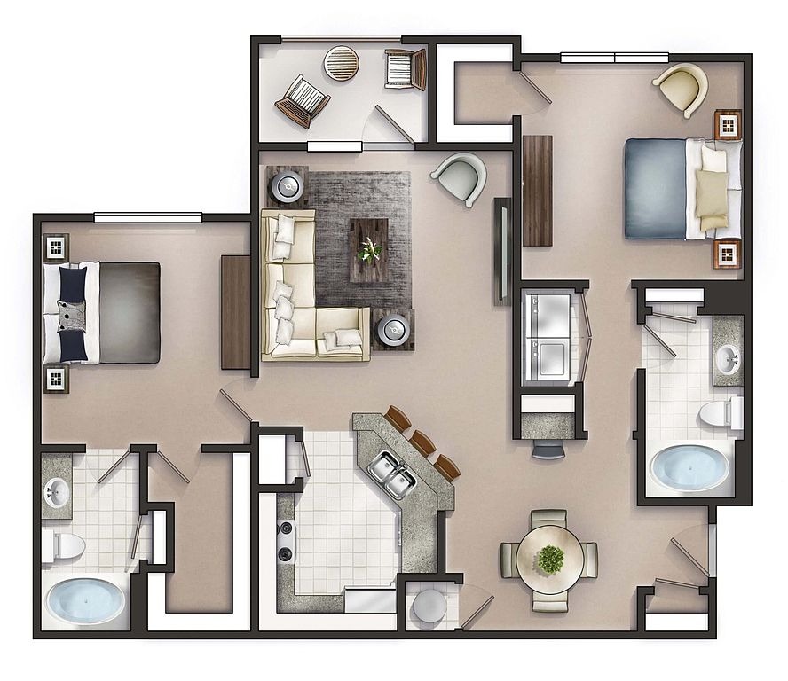 2 bd2 ba1K sqft