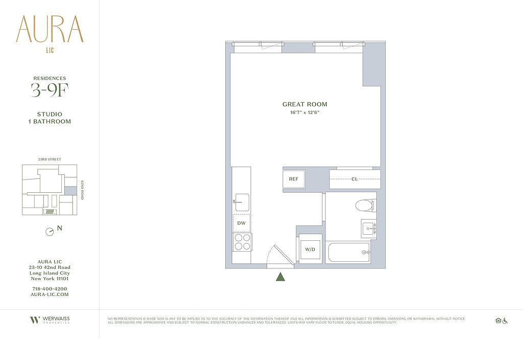 Offering studio, one- and two-bedroom apartments, AURA's sophisticated design and meticulous detail raises boutique living to new heights. Enjoy whisper-quiet central heating and cooling for ultimate comfort, keyless entry with dormakaba smart technology, white oak flooring, and a washer/dryer in every unit.