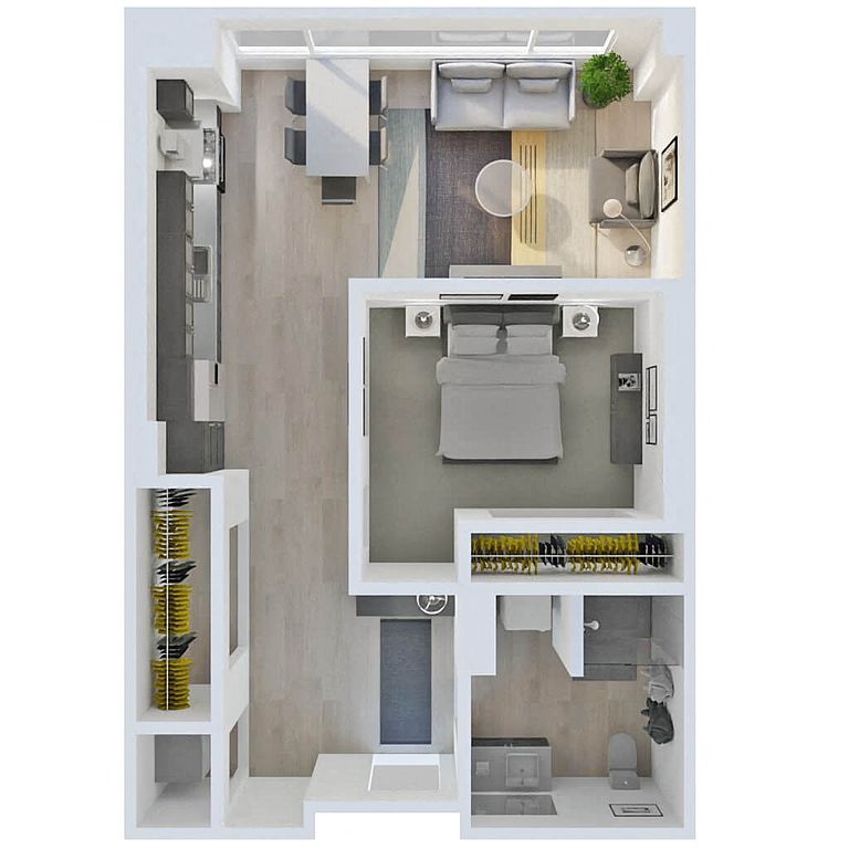 Studio 1 ba536 sqft