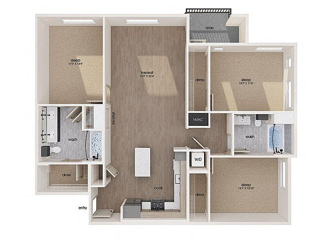 Stainless-steel appliancesIn-home washer and dryerPlenty of social spaces