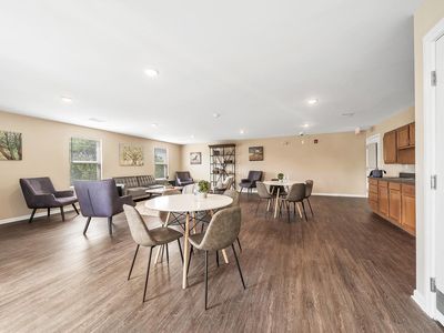 The living room is 545 square feet with 12 foot ceilings and hardwood maple floors. The bedroom is 12 X 17 and has plush carpet and room darkening window treatments and ceiling fan.