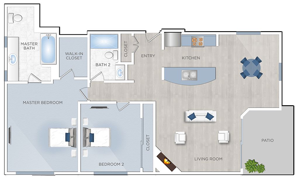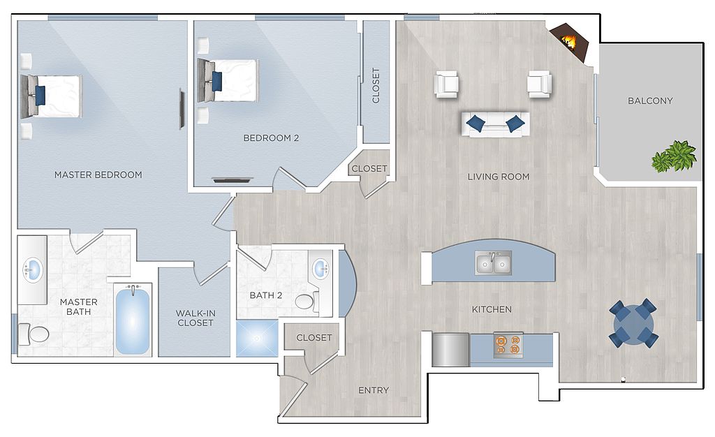 Mark Twain Apartments feature spacious condo-quality apartments with all the amenities like high ceilings, granite countertops, elegant two-tone paint, ceiling fans, walk-in closets, private balconies, and gas fireplaces. Step into one of our expansive floor plans and explore luxury apartment living.