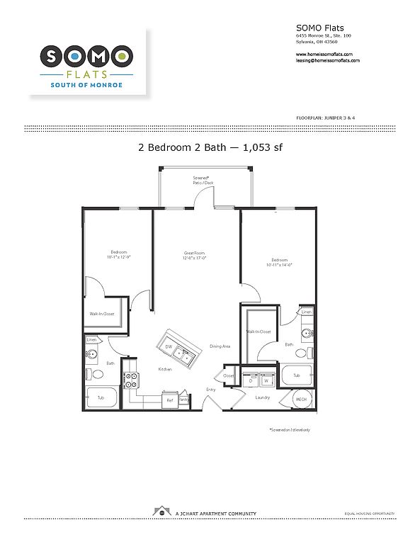 SOMO Flats is J.C. Hart Company's newest luxury apartment community in Sylvania, OH. Phase I houses 206 apartment homes, a clubhouse, pool, and underground parking with Phase II housing 96 apartments. The units are a mix of 1, 2, and 3-bedroom apartments. The property also offers a dog park and many outdoor spaces to enjoy! Much more awaits in downtown Sylvania with many businesses, shops, and more just a short walk, bike ride, or car ride away.