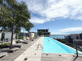 Welcome To Monde Condos. Proudly Built By Great Gulf Complete With Internationally Recognized Architecture And Design By Moshe Safdie. This Impeccably Maintained East-Facing 1 Bed + Den Offers 671 Sqft + 59 Sqft Balcony, 9' Ceilings, Floor-To-Ceiling Windows, Hardwood Floors Throughout, And Breathtaking Unobstructed Views Of Lake Ontario And The City Skyline. The Upgraded Contemporary Kitchen Features Integrated Appliances And A Dropped Dining Table With Custom White Oak Woodwork. Enjoy Resort-Style Amenities Including A Saltwater Infinity Pool, Rooftop Patio, Fitness Centre, Yoga Studio, Saunas, Guest Suites, 24-Hour Concierge, And Visitor Parking. Steps To The Waterfront Promenade, Port Lands, New LRT And Future Ontario Line, Plus Walking Distance To Groceries And Countless Restaurants - Offering A Truly Sophisticated, Turnkey Urban Lifestyle. High-Speed Internet Included.