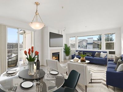 The primary suite offers two closets and a private ensuite, while the second bedroom has its own full bath and private balcony. Additional highlights include garage parking and convenient access to shopping, dining, parks, PCC Rock Creek, and Tanasbourne.