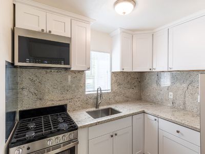 Large picture windowsCovered parkingOn-site laundryLarge deckExtra storageFull kitchenHardwood floors