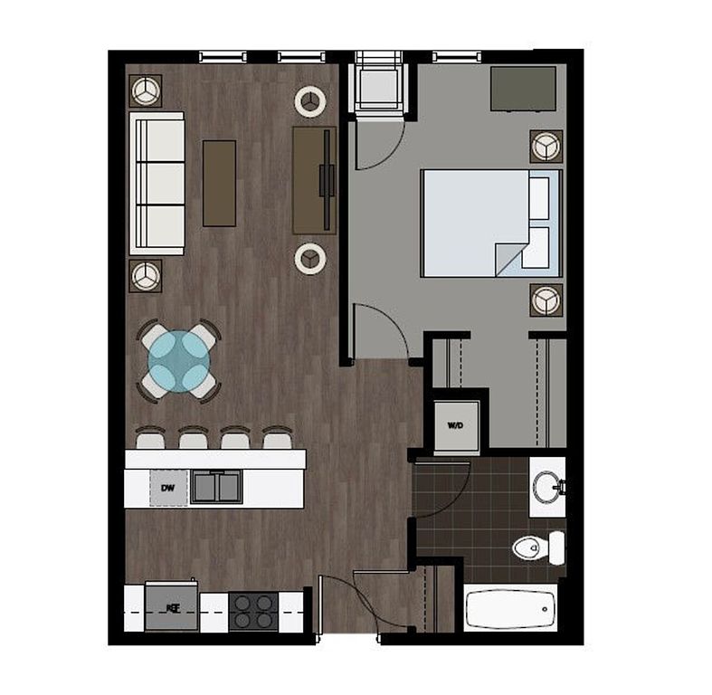 Each apartment is thoughtfully designed with elevated finishes that make everyday living feel luxurious: granite countertops, stainless steel appliances and fixtures, sleek tile backsplashes, and the convenience of in-unit laundry.