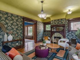 This home features original woodwork, marble fireplaces, a fully equipped kitchen, and smart TVs. The expansive living room boasts an original marble fireplace, soaring ceilings, and an abundance of natural light, creating a warm and inviting atmosphere. Through the original pocket doors, you'll find the elegant dining room, complete with built-in cabinetry, a large dining table, and a bar cart. The kitchen is fully equipped, providing everything you need to effortlessly prepare homemade meals. An original N64 gaming system and board games are available for your entertainment.