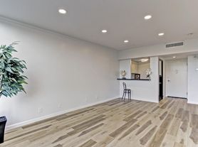 What a wonder place to lease! Renovations completed end of November 2021. This Sleek Clean-line designed one bedroom unit features hardwood floors throughout, high ceilings, and recessed lighting. The cutest retro kitchen with imported Mexican tile flooring, metal countertops, mirrored backsplash, fridge/freezer and blinds. Granite breakfast bar opens to large living room with great natural light. Bedroom designed with pocket doors, remote controlled ceiling fan with light. Bedroom opens to 2 closets and full bath with tub/shower, oversized tile surround, barndoor glass enclosure, vanity with marble countertops, and great built-ins. The Regency sits on approx. 2 acres with a private pool, newly renovated exercise room and Concierge. The lease amount includes an assigned secured garage parking space, all utilities with basic cable. Sleek, Simple, Clean line Designed in an unbelievable location.