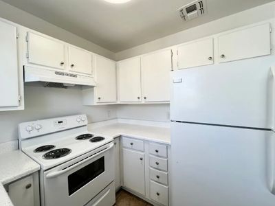 Newer kitchen cabinetsTwo bedroomsNeutral interior paint