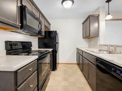 Refrigerator, stove, dishwasher, and microwave provided