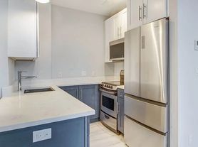 Recently renovated, this space exudes a sleek and modern aesthetic. Enjoy the roomy interior featuring stainless steel appliances, including a dishwasher and range hood. The dark hardwood floors, exposed beams, and brick accents elevate the apartment's charm and elegance.
