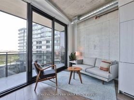 Authentic Post-and-Beam Loft at Coveted Carhartt Lofts! Zoned Live/Work, this rare offering features approximately 1,500 sq ft of dramatic open-concept space with soaring ceilings, exposed brick, and rich hardwood floors throughout. A stunning corner unit, flooded with natural light through oversized industrial windows, showcases true hard-loft character. The private primary bedroom enjoys a direct walk-out to an expansive ~400 sq ft terrace-an exceptional outdoor retreat perfect for entertaining or quiet city evenings. A unique blend of history, scale, and style, this is true loft living in one of Toronto's most iconic boutique buildings. Absolutely one of a kind.