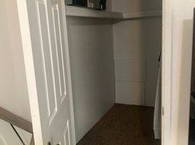Private room with a sliding glass door for a private entrance. There is a large spacious walk in closet, carpet, and very modern kitchen and living room. There is a bathroom down the hall,