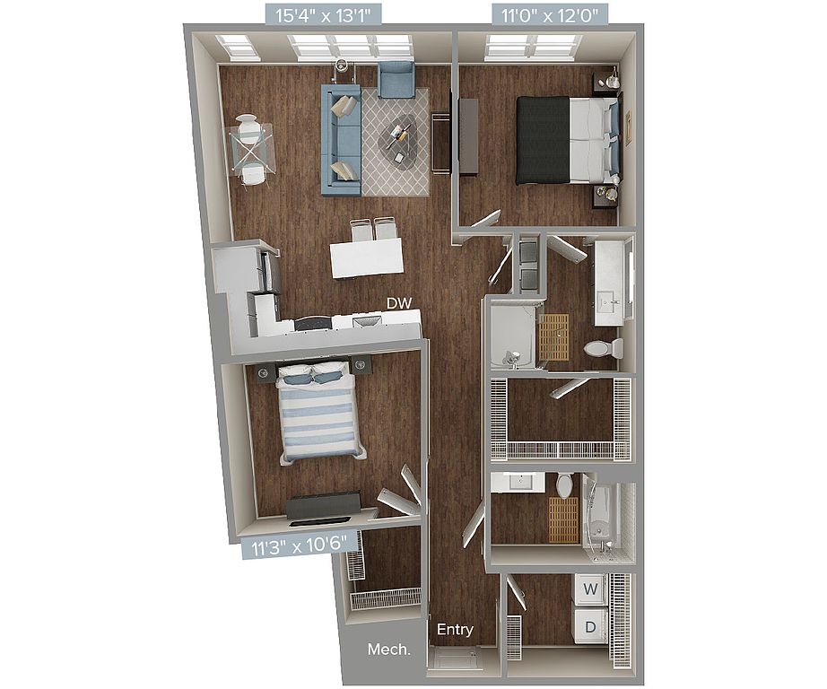 Quartz countertopsWasher and dryerRooftop deckStainless steel appliances