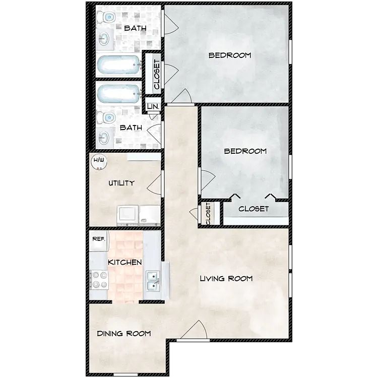 Private patiosWalk-in closetsSpacious floor plansBeautifully maintained groundsThoughtfully designed interiorsBasketball and volleyball courtsResort-style swimming pool