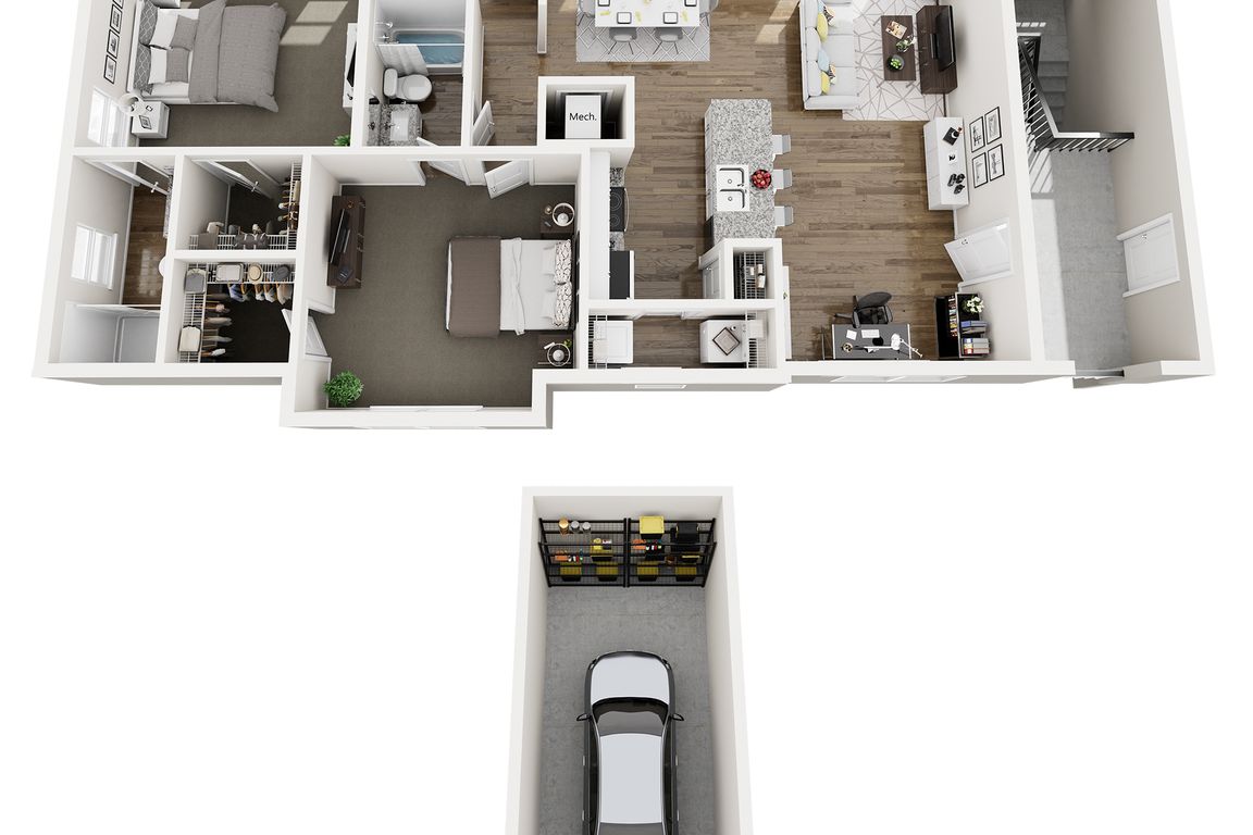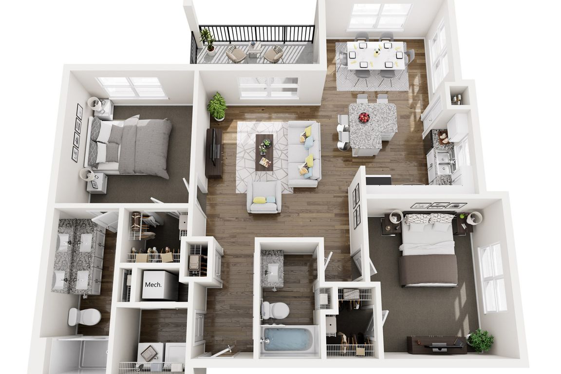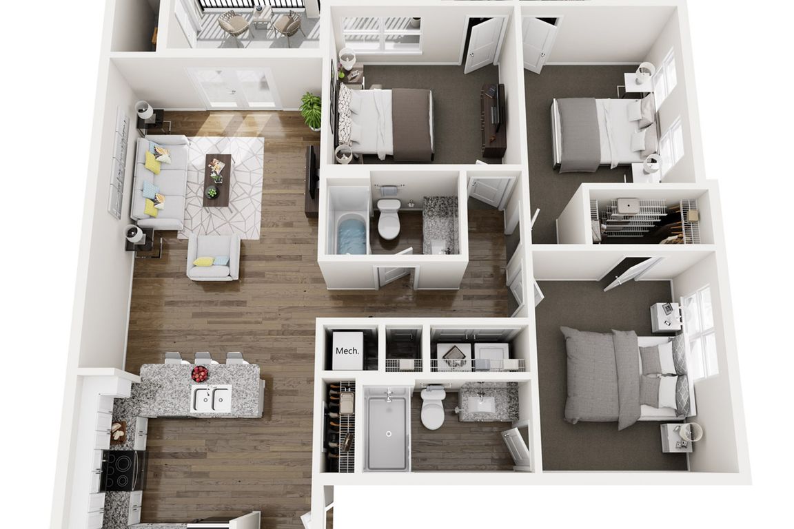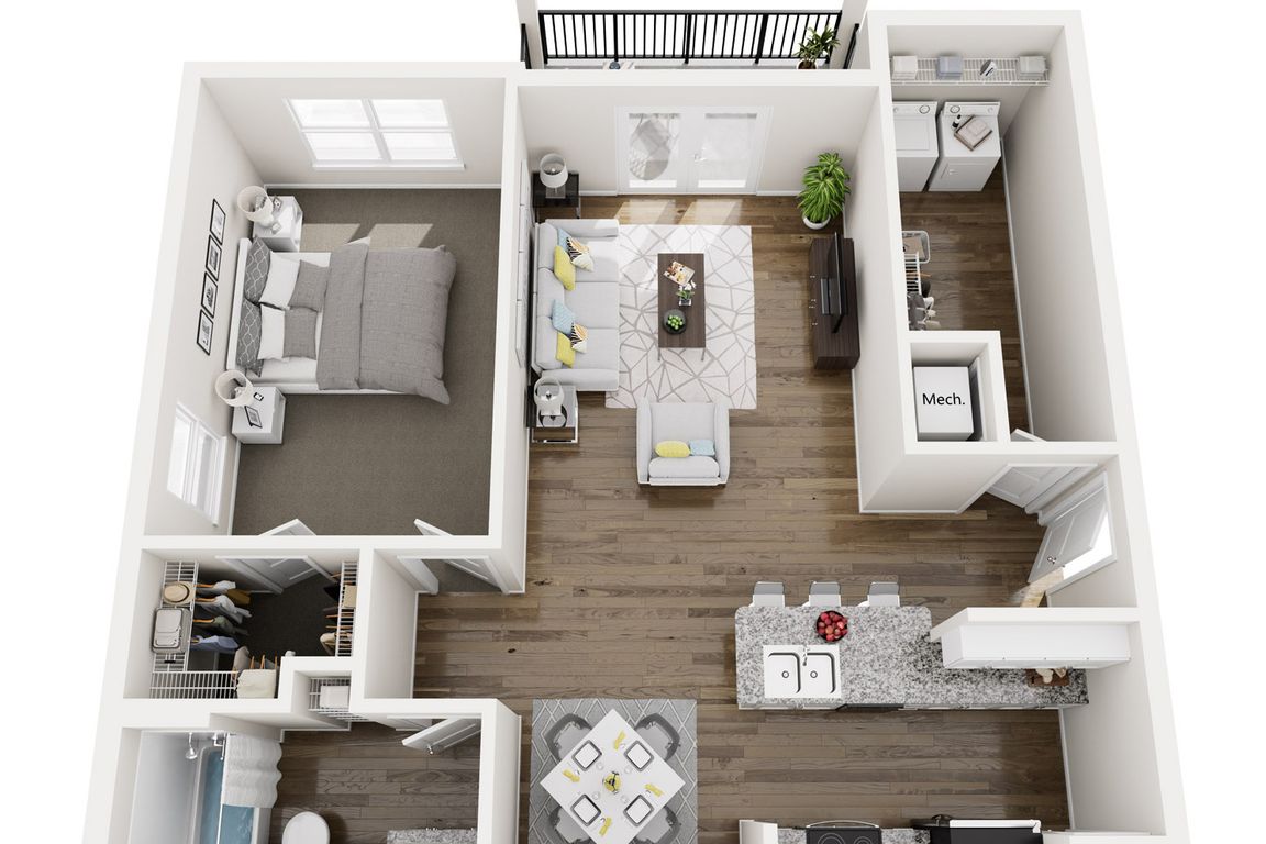 Spacious one, two, and three bedroom apartment homes feature open-concept layouts, contemporary finishes, full-size washer and dryer, and private patios or balconies. Thoughtfully designed community amenities create a connected and elevated living experience.