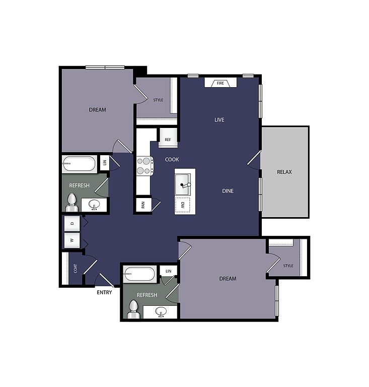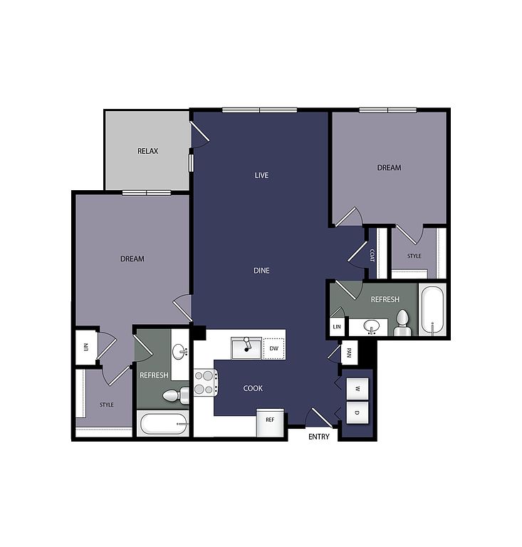 Studio 1 ba643 sqft