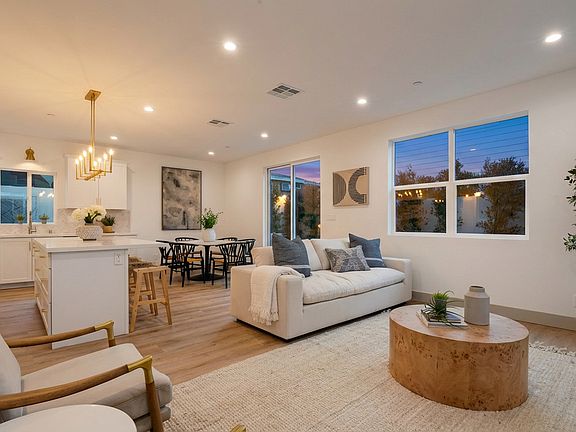 The garage includes epoxy flooring, EV-ready charging, and a Wi-Fi opener. Enjoy a private patio yard, solar panels, and all-electric efficiency.