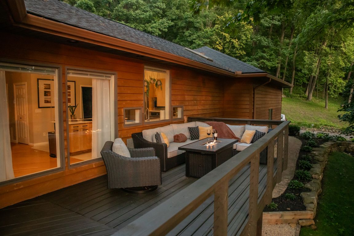 Welcome to Seven Islands, your new home nestled in the bluffs along the Mississippi. Thoughtfully designed with panoramic river views, this gorgeous walkout ranch combines open-concept & indoor-outdoor living flawlessly, with wraparound decks, tall windows & wood finishes. Multiple exterior doors invite you outside to enjoy privacy & wildlife on 3.8 ...